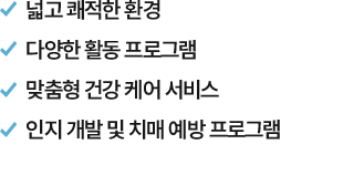 가족이 안심하고 맡길 수 있도록, 어르신 한 분 한 분의 상황에 맞춘 맞춤형 케어를 제공합니다.