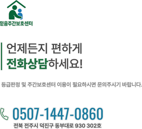 믿음주간보호센터는 어르신들의 따뜻하고 안전한 일상을 지원하는 주간 돌봄 전문기관입니다.